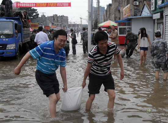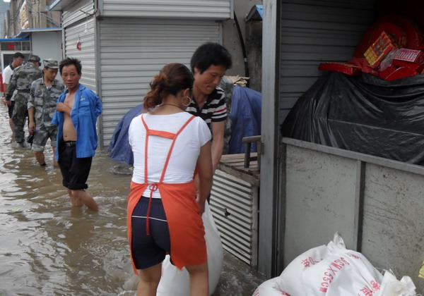 7月8日凌晨3點起,降雨強度大 、雨量大,巨龍農(nóng)貿(mào)市場積水深度30公分,最深處達(dá)60公分,兩個配電房、經(jīng)營出租房、職工宿舍等全部被淹。該單位立即啟動抗洪應(yīng)急預(yù)案,全體職工幾天來吃住在抗洪工作一線,幫助經(jīng)營戶轉(zhuǎn)移糧食,轉(zhuǎn)移被淹戶3家,建防洪堤6個; 對兩個配電房進(jìn)行晝夜值班、排水。