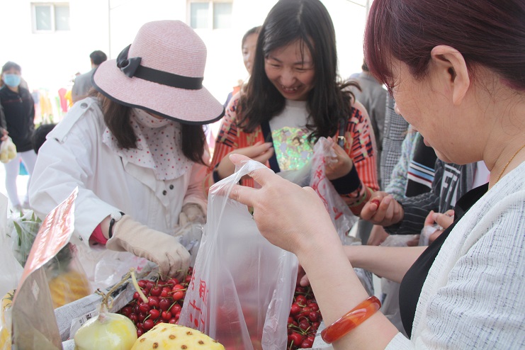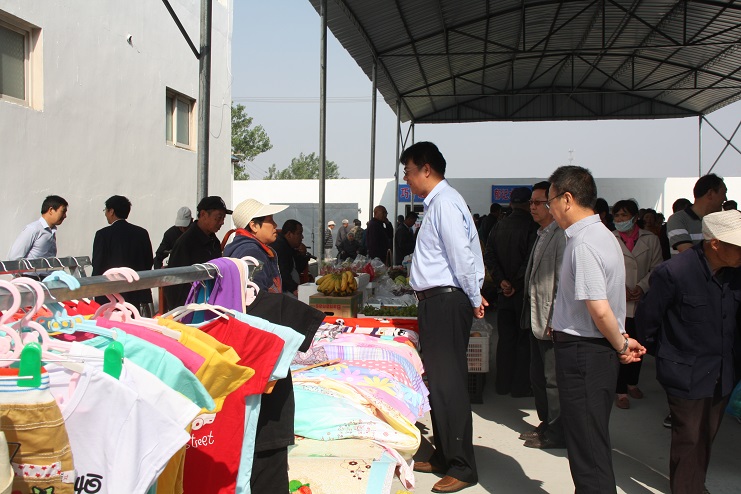 5月12日隨著一陣鞭炮聲響起,灌西扶貧幫困基地經過一個多月的施工建設,如今正式投入使用?;貎?,賣水果蔬菜的、糧油衣服小販商戶,購物買菜的職工群眾來來往往,人頭攢動,一派熱鬧景象