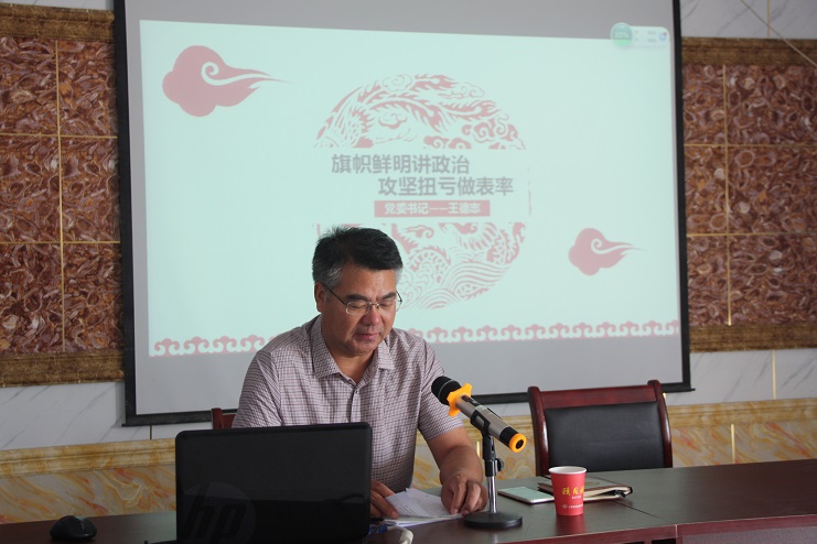 7月20日下午,投資公司黨委書記、董事長王德志圍繞“旗幟鮮明講政·攻堅扭虧做表率”這個主題,在生產(chǎn)服務(wù)公司會議室為日曬制鹽片區(qū)黨員干部上專題黨課,強(qiáng)調(diào)各級黨組織和廣大黨員干部要全面落實省市委最新部署要求,切實增強(qiáng)旗幟鮮明講政治的思想自覺和行動自覺。