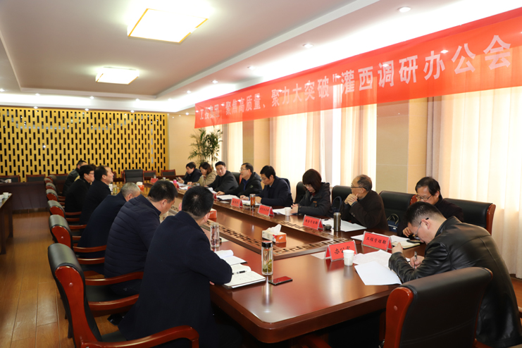 2月25日上午,集團(tuán)公司總經(jīng)理胡建明、副總經(jīng)理張其海、總經(jīng)濟(jì)師陳如軍帶領(lǐng)集團(tuán)相關(guān)部門負(fù)責(zé)同志來灌西公司調(diào)研指導(dǎo)工作。公司黨委書記、董事長、總經(jīng)理李國文陪同調(diào)研。