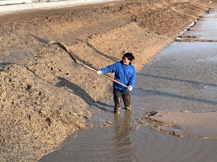在制鹽生產(chǎn)一線,印象中是男人的戰(zhàn)場,那么和他們并肩在戰(zhàn)場上的女職工一定是女中豪杰。新河制鹽分公司十五班員工楊中華自2011年成為日曬制鹽員工以來,一直堅守在生產(chǎn)制鹽一線,憑借過硬的基本功,成為公司首位星級員工,她經(jīng)常鞭策自己要堅持不懈地奮斗,活碴、扒鹽、補(bǔ)塑料,女人能做的她能做,撈溝、做埝、清土塘,男人能干的他也能干,是名副其實(shí)的“全面手”。一年四季,她從未穿過漂亮的裙子,工作服、安全帽、勞保鞋就是她的標(biāo)配,烈日驕陽下,風(fēng)雨瓢潑中哪里都有她的身影,作為女性有時確有諸多不便,但是她從沒把自己當(dāng)女人看,該干的工作照干,該往前沖的她決不后退,工作早已成為了她的樂趣,看似“自討苦吃”的努力,卻讓她百煉成鋼,為了扒鹽,她連續(xù)放棄二個月陪同兒子的美好時光,全力以赴做好扒鹽工作,在班長生病住院期間,她挺身而出主動挑起班里各項事務(wù),為班組的生產(chǎn)業(yè)績提供有力支撐。