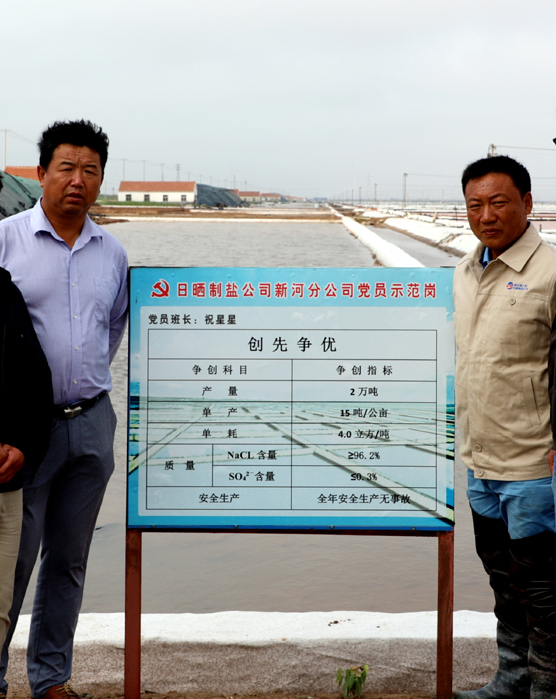 2016 年底,由于祝星星的出色表現(xiàn),在全公司31個班組長中,他被公司選中擔任原料鹽基地的班長。面對新的班組、新的戰(zhàn)場,他帶領(lǐng)班組全體員工,發(fā)揚不怕吃苦、不怕累、大愛擔當、大志拼搏的精神,在短短一年的時間里,使原料海水鹽結(jié)晶區(qū)灘地面貌就煥然一新,不管是生產(chǎn)管理還是在灘場文明管理上均走在公司的前列。2018 年,為公司創(chuàng)建一流的海水原料鹽基地,他帶領(lǐng)著全體班組成員積極完善“傳統(tǒng)海鹽+新式工藝”的生產(chǎn)模式,大力實施原鹽質(zhì)量標準化建設(shè),強化生產(chǎn)管理、灘場文明等環(huán)節(jié)的執(zhí)行力度,向著生產(chǎn)優(yōu)質(zhì)原料鹽1.5 萬噸的目標邁開了新的步伐。