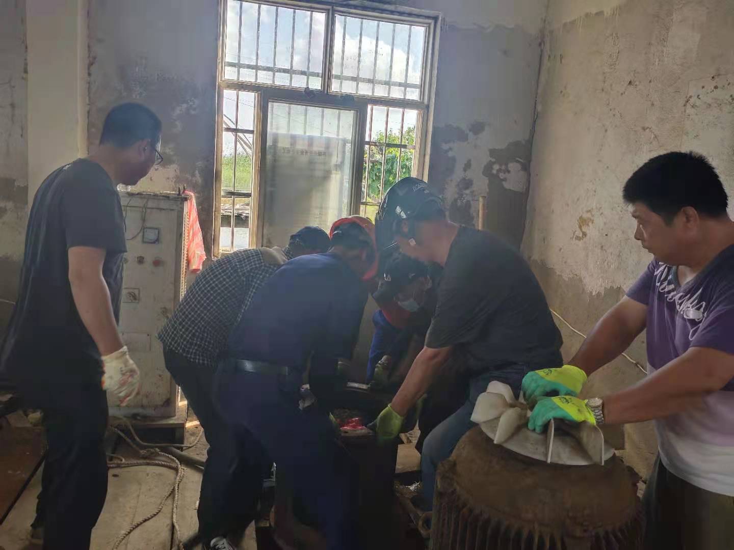 鑒于此次疫情已經(jīng)迅速波及國內(nèi)多個省市,防控形勢十分嚴(yán)峻。當(dāng)前又正值海水養(yǎng)殖戶用水高峰,連續(xù)多日供水使六圩閘大站5臺155KW軸流泵其中三臺出現(xiàn)故障,小站2臺55KW軸流泵全部發(fā)生故障,機泵不能正常運轉(zhuǎn)。資源管理中心當(dāng)即召開班子會議,對防疫和修泵工作進行統(tǒng)籌部署,明確分工,壓實責(zé)任,積極做好防疫宣傳引導(dǎo),不留死角;搶修機泵做到安全監(jiān)護管理到位,確保潮汛來臨之前要維修到位,不誤供水。為了搶時間趕進度,該公司經(jīng)理江德全多方協(xié)調(diào),從兄弟單位借調(diào)2名年輕機修工錢明星和楊加棟來協(xié)助機修組,并安排六圩閘站全體員工參與。他們頂著機房30多度的高溫加班加點,中午吃著快餐,飯后又立即投入搶修工作中,通過六天的連續(xù)奮戰(zhàn),機器全部維修到位,保證了泵站及時供水。(資源管理中心宣)