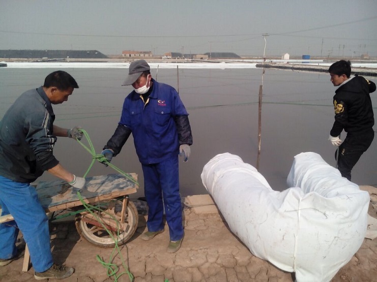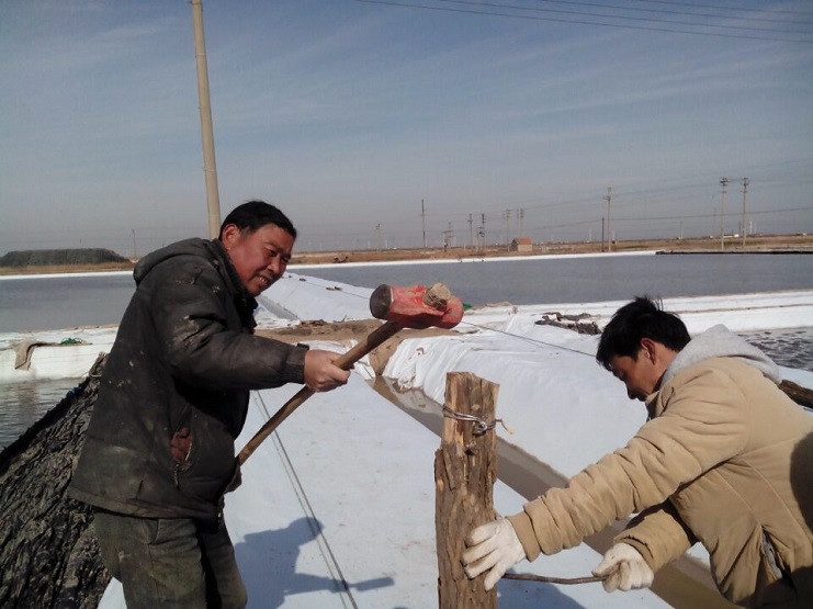 實(shí)業(yè)公司制鹽分公司加快推進(jìn)灘場(chǎng)文明建設(shè)。截止日前,分公司海鹽基地二班已上齊土工布二千六百米,打樁一百八十四根,為今年制鹵提供了有力保障。(實(shí)業(yè)公司)
