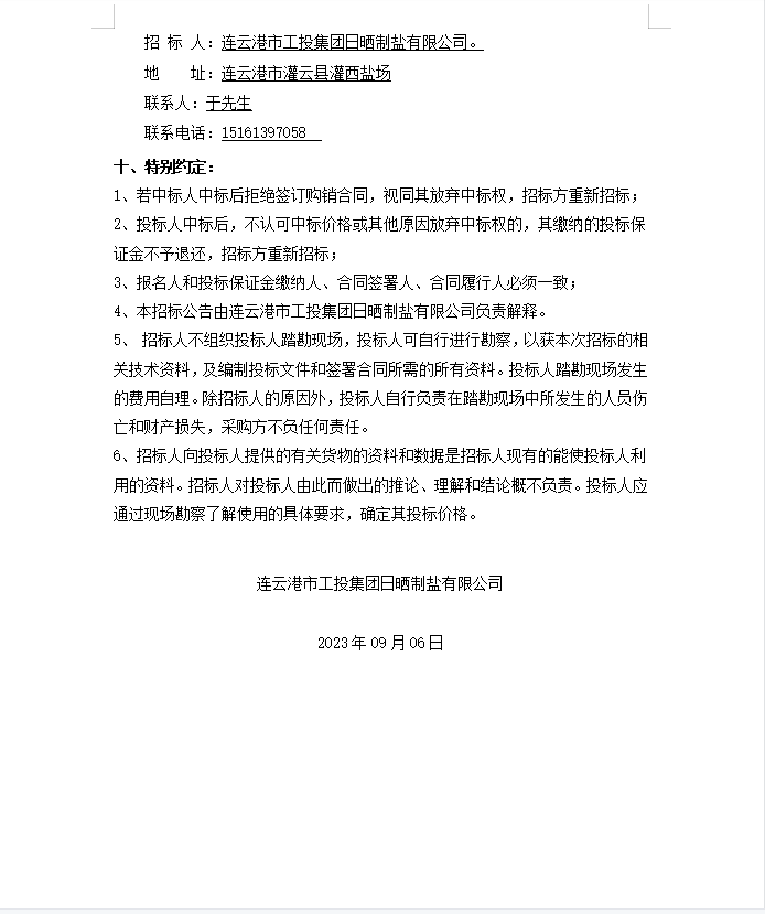 連云港市工投集團日曬制鹽有限公司機油、液壓油等物資公開招標公告