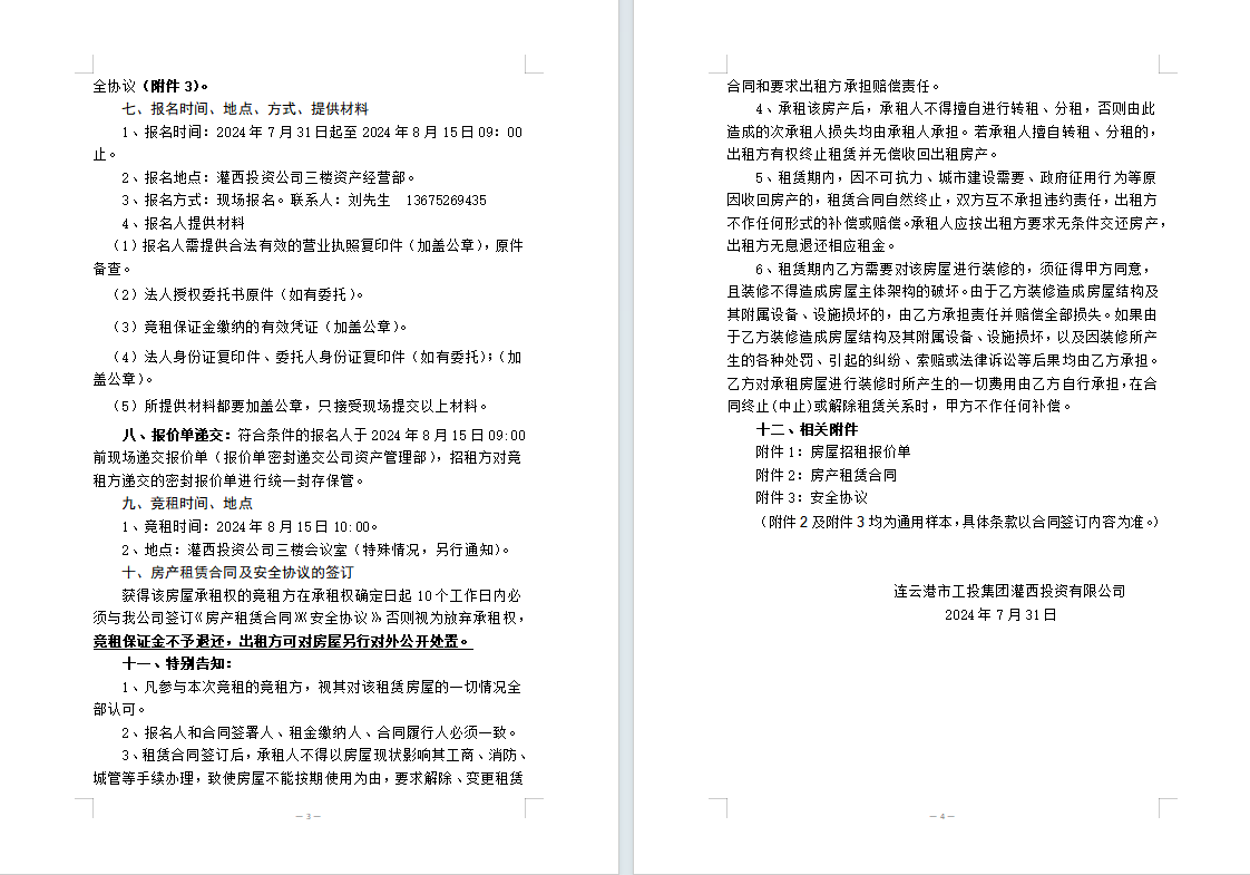 附件1:房屋招租報(bào)價單