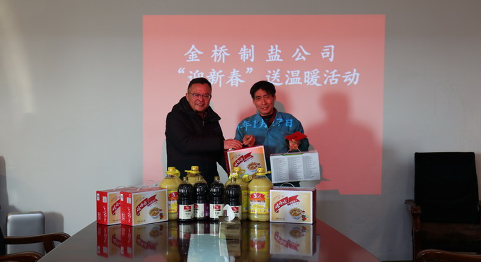 1月17日上午,我公司開展“迎新春”送溫暖活動。公司黨委書記、總經理田磊,黨委副書記、紀委書記、工會主席曹開明和副總經理李忠祥代表公司慰問困難黨員和困難職工,為他們發(fā)放油、牛奶等慰問品和慰問金,囑咐他們要克服困難、樹立信心,保持積極向上的心態(tài),早日走出困境。(金宣)