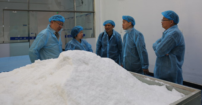 伍茂輝一行參觀了公司雪花鹽車間、包裝鹽車間、加工鹽車間,詳細(xì)了解了我公司鹽產(chǎn)品產(chǎn)銷情況;雙方就加強(qiáng)合作事宜進(jìn)行了洽談,雙方商定在鞏固原有業(yè)務(wù)合作的基礎(chǔ)上,在進(jìn)一步加強(qiáng)雪花鹽和顆粒鹽等產(chǎn)品的市場開拓方面加強(qiáng)合作交流。(金宣)