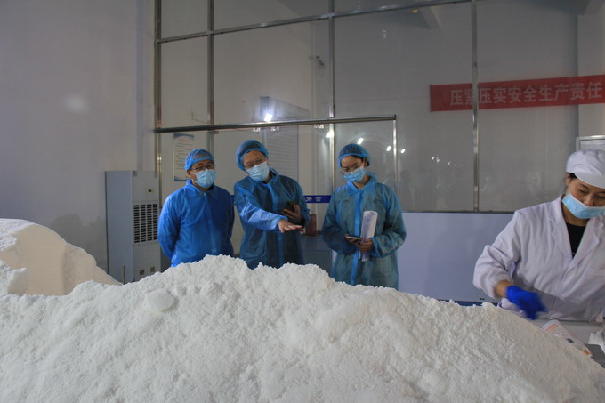 檢查組一行查看了公司相關(guān)臺(tái)賬資料,實(shí)地查看了加工鹽車(chē)間、包裝鹽車(chē)間、雪花鹽車(chē)間、化驗(yàn)室等;檢查組一行對(duì)我公司食品安全管理工作給予肯定,并對(duì)下一步隱患排查整改工作提出了意見(jiàn)和建議。