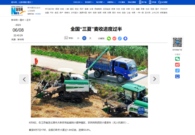 自6月8日麥?zhǔn)展ぷ鲉?dòng)以來,青口投資公司高度重視、精心組織,科學(xué)高效調(diào)動(dòng)全方面因素,全力投入耐鹽堿小麥?zhǔn)崭罟ぷ鳎?/span>開創(chuàng)了農(nóng)業(yè)高質(zhì)發(fā)展新局面,受到了中國(guó)政府網(wǎng)、人民網(wǎng)、新華社、新華網(wǎng)、連云港日?qǐng)?bào)、蒼梧晚報(bào)等中央、省市級(jí)主流媒體的廣泛關(guān)注。(青 宣)