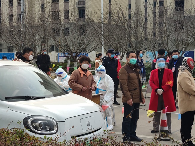 從3月5日起,公司配合社區(qū)已陸續(xù)啟動了5輪重點區(qū)域人員核酸檢測,及時、高效、科學(xué)、有序。“居民朋友們,請?zhí)崆皽?zhǔn)備好健康碼、身份證,全程佩戴口罩,有序排隊,保持距離,等候檢測……”在核算測點可以看到,醫(yī)護(hù)“大白”、黨員志愿者等各司其職,有條不紊地開展各項工作。參加核酸檢測的居民在“小喇叭”的提醒和工作人員的引導(dǎo)下陸續(xù)進(jìn)行檢測。排隊、測體溫、掃碼、進(jìn)入檢測區(qū)域、依次進(jìn)行人員登記、采樣……整個過程及時、高效、科學(xué)、有序。為確保核酸檢測做到應(yīng)檢盡檢,公司還聯(lián)合社區(qū)開展“敲門行動”,協(xié)助配合做好上門信息登記、政策宣傳等工作,用實際行動,擔(dān)當(dāng)作為,為百姓筑牢了抗疫防線。