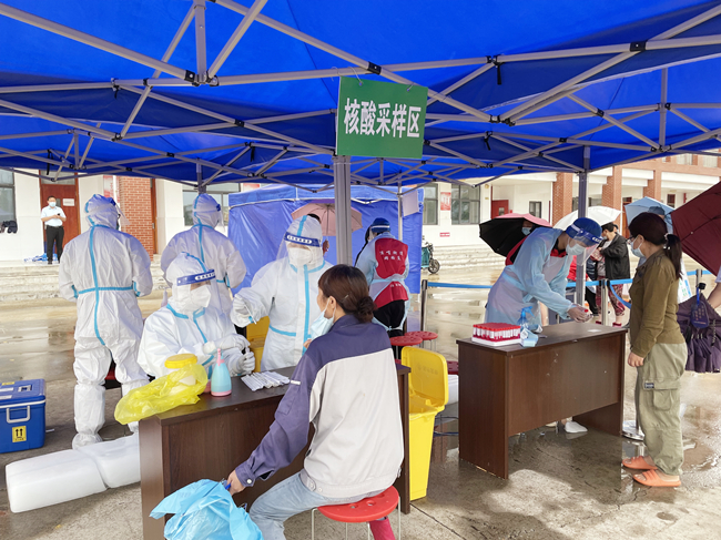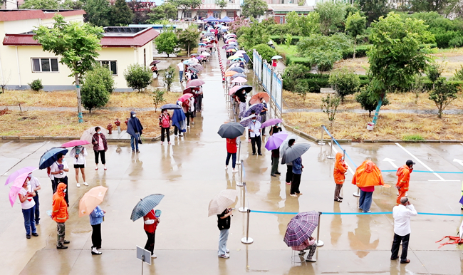 社企聯(lián)動,共同抗疫!職工群眾雨中核酸檢測