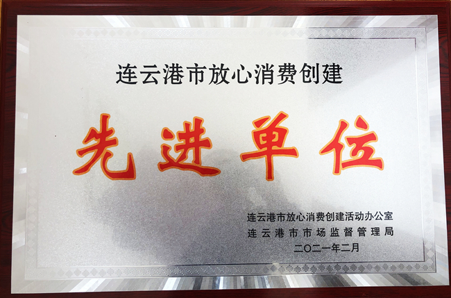 近日,青口投資公司榮獲連云港市2020年度“連云港市放心消費創(chuàng)建先進單位”。