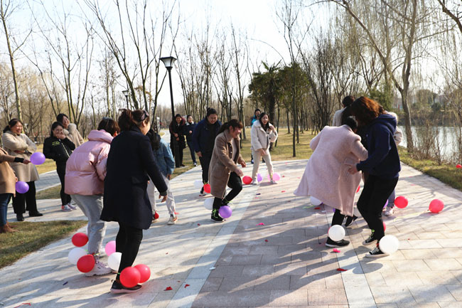 為使大家身心得到最大放松,投入戶外體驗清新大自然,在絲路小鎮(zhèn)公園進行了“三月女人天 別樣婦女節(jié)”主題戶外活動。游戲“你畫我猜”中,隊員們有的配合默契一猜既中,也有的用肢體艱難的比劃著,引的大家捧腹大笑。“踩氣球”游戲更是讓現(xiàn)場氣氛達到沸點,每人都放開平日工作中的嚴謹,放松心情在場地上追逐奔跑。大家在游戲中收獲了歡聲笑語及片片感動,同時,通過游戲提高大家的合作意識和進取精神,營造濃郁節(jié)日氣氛。