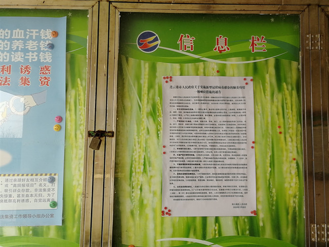 大新農(nóng)場接通知后,迅速組織會議,安排人員每天對轄區(qū)有無湖北人員回鄉(xiāng)過年情況進行實時跟蹤,并將《連云港市人民政府關(guān)于新型冠狀病毒感染的肺炎疫情情況及一級響應(yīng)措施通告》以及防控疫情的措施張貼,積極宣傳如何采取防控措施和有關(guān)防治的常識。通過電話、QQ群、微信群、公開欄等方式及時通知到本單位職工群眾。并告知廣大職工群眾要依法接收網(wǎng)絡(luò)發(fā)布的相關(guān)信息,堅決抵制不法信息,做到不信謠、不傳謠。按照公司要求,配合社區(qū)在公司主要路口設(shè)卡防控,督促轄區(qū)畜禽養(yǎng)殖場:圣樹雞場做好消毒滅源工作。(尤冬冬)
