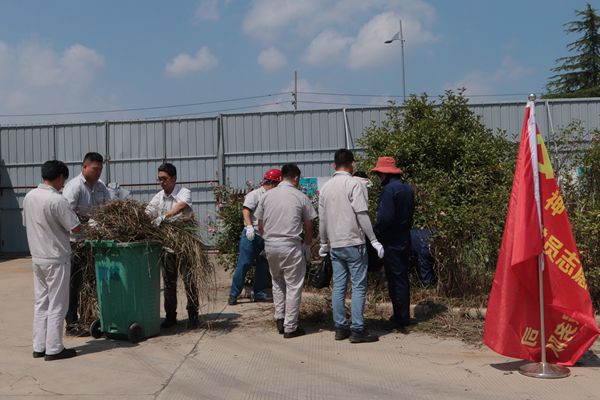 活動中,30余名黨員同志頂著烈日,他們不畏酷暑,揮汗如雨,有的在廠區(qū)的綠化帶里認真清理雜草、樹枝和垃圾,有的負責運送垃圾,到處都是熱火朝天的勞動景象。