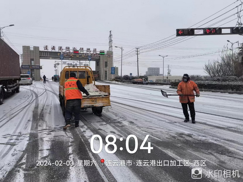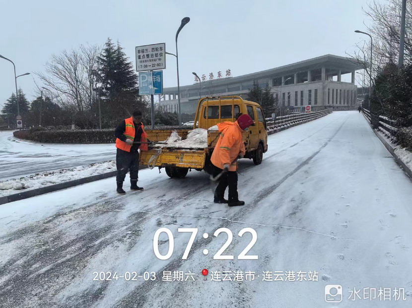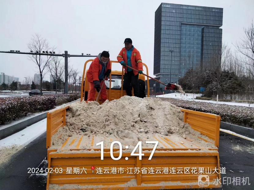 “雪情即戰(zhàn)情”。天剛蒙蒙亮,猴嘴、開發(fā)區(qū)、連云、墟溝····連云港火車東站、馬山立交、黃海大道、花果山大道、東方大道·····到處是臺北、華茂公司的“橙色”突擊隊