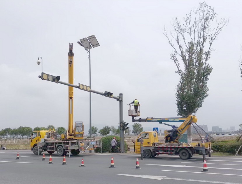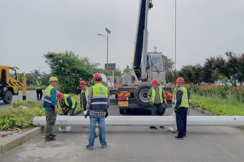 隨后,筆者一行,頂著烈日,驅(qū)車前往翔立分公司市政工程現(xiàn)場,在封閉的道路內(nèi),翔立公司一群黃馬甲戰(zhàn)士,正頂著烈日在緊張的進(jìn)行交通監(jiān)控探頭安裝工作。據(jù)了解他們也是5點(diǎn)多種就到崗位上來了。經(jīng)理喬以成帶著兩名員工站在高高的升降機(jī)上,鉗子、扳手、鏍絲刀,各種工具在他們手里輪番操作,汗水已將其工作服的前胸后背浸透。好不容易等到他們安裝完一組探頭下來,我們一邊遞水,一邊采訪,老喬擰開瓶蓋,一口氣喝下半瓶,這才回答我們的問題:“不能不拼啊,我們離盈利還有不小的缺口,現(xiàn)在全公司、全集團(tuán)都在解放思想提質(zhì)增效,不干、不努力哪里來的增效啊!