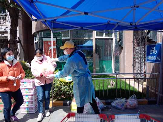 “大爺,您好,拿什么菜?”早上8點,海州防疫臨時黨支部的江海凌同志開始一天的志愿服務。不過,他今天“改行”了,不再是信息采集員,而是化身鄰居菜籃子的“守護者”。