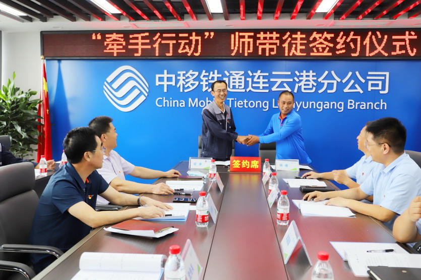 ? ? ? ? “黨建和創(chuàng)”是臺(tái)北投資公司、中移鐵通連云港分公司基于產(chǎn)業(yè)轉(zhuǎn)型戰(zhàn)略合作的黨建保障工程?!盃渴中袆?dòng)”師徒結(jié)對(duì)是公司按照建設(shè)知識(shí)型、技能型、創(chuàng)新型勞動(dòng)者大軍這一目標(biāo)任務(wù),切實(shí)加強(qiáng)新時(shí)代產(chǎn)業(yè)工人隊(duì)伍建設(shè),大力弘揚(yáng)工匠精神,充分發(fā)揮工匠的示范帶動(dòng)作用,拓展職工職業(yè)技能培養(yǎng)的重要途徑。通過師帶徒方式培養(yǎng)通信工程技術(shù)人員,為公司在推進(jìn)通信工程業(yè)務(wù)承接中建隊(duì)伍,打基礎(chǔ),推進(jìn)新一輪產(chǎn)業(yè)轉(zhuǎn)型走的更堅(jiān)實(shí)、堅(jiān)定,為公司高質(zhì)快速發(fā)展增添新動(dòng)力。