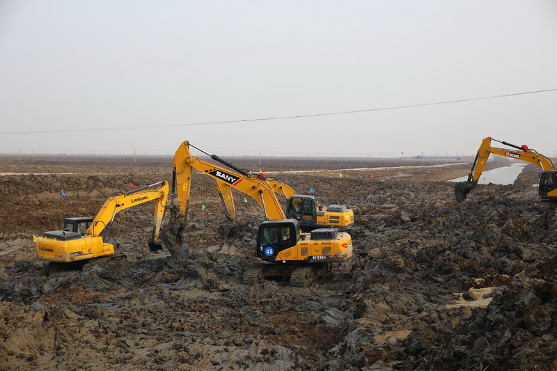 ? ? ? ? “本周,開塔河工程一定要實現引水入池......”根據公司作戰(zhàn)指令,養(yǎng)殖發(fā)包戰(zhàn)工地上,十余臺大型挖掘機一字排開,緊張有序作業(yè)。