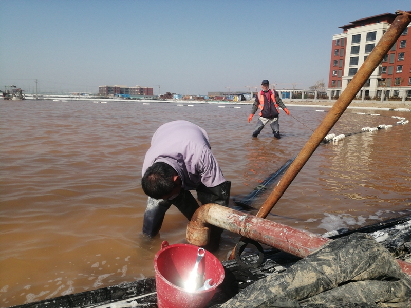 管頭螺絲擰緊沒有?觸電保安器試跳過了嗎?先開機(jī)試一試管道漏不漏”。在扒鹽現(xiàn)場,扒鹽人員對開機(jī)前準(zhǔn)備工作再一次檢查確認(rèn)。隨著陣陣鞭炮聲的響起,海州灣公司“春扒”正式開啟。