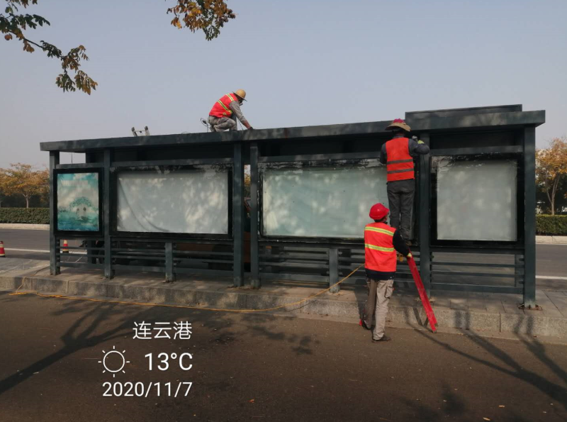 鏡頭一:7號清晨,享有翔立“鐵軍”扛把子稱譽的機械班已經(jīng)熱火朝天的投入到黃海大道公交站臺除銹噴漆翻新維護施工中,據(jù)悉,該項工程共有12座公交站臺需要維護噴漆翻新,工程造價12萬元。