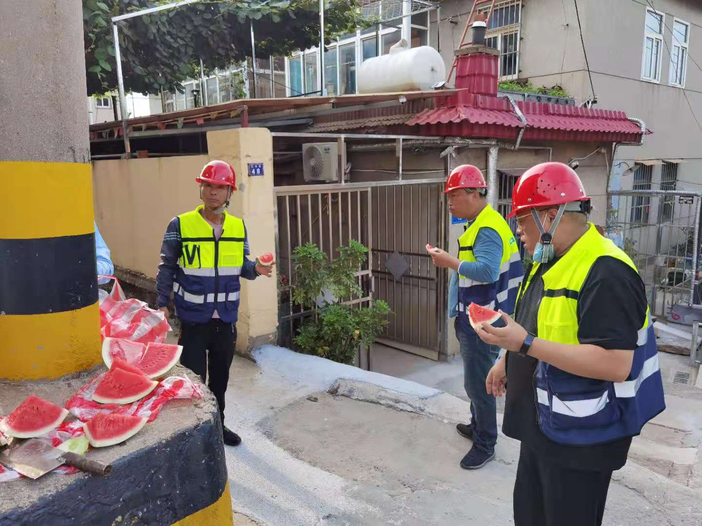 這么熱的天,干完活吃塊西瓜別提多舒坦了!