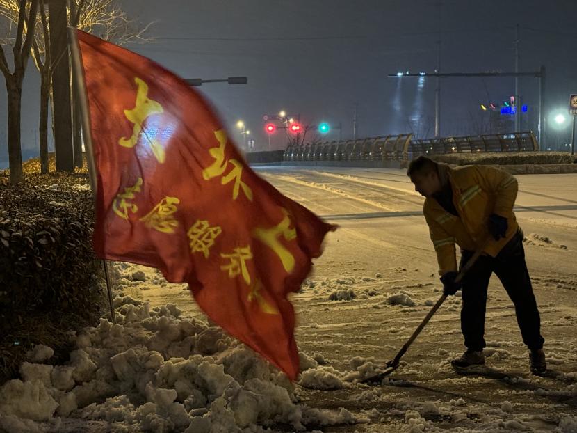 “搖人,快搖人”。環(huán)衛(wèi)分公司迅速響應(yīng)并于凌晨1點(diǎn)01分緊急啟動掃雪除冰應(yīng)急預(yù)案,全力以赴迎戰(zhàn)風(fēng)雪。