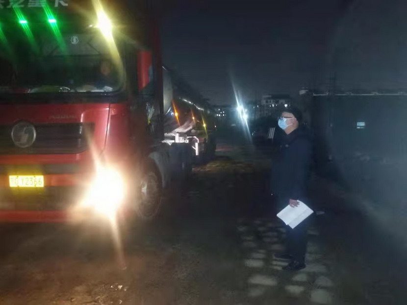 在登記信息的過程中,公司紀檢專員孫健細心的發(fā)現(xiàn)駕駛?cè)藛T的不對勁,“師傅,您看起來很疲憊,是身體不舒服嗎?”“小伙子觀察真是細致,我只是太餓了,閉環(huán)管理規(guī)定駕駛員不準離車,所以我從鹽城出來4個多小時還沒有吃晚飯。”“師傅,您稍等一下,我去給您買份快餐,再給您燒壺熱水!”當駕駛員吃完快餐,鈣液車也裝貨結(jié)束,此時已是晚上940分,按照“方案”規(guī)定,“大白”程輝對車輛進行離場消殺,并拍攝相應消殺照片,上傳系統(tǒng)。