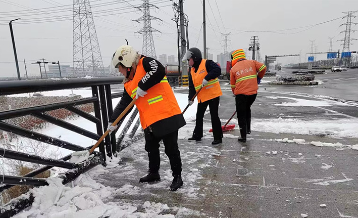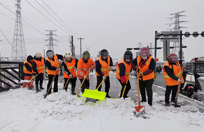 在白雪皚皚的雪地里,身穿橘黃工作服的保潔工人就是最美的點綴,他們頂著風(fēng)雪吹打臉頰,兩人一組、三人一對,配合默契,揮動手中鐵銑,用力拋灑融雪鹽斤80多噸,10余車。道路橋粱兩側(cè),人行輔道邊上,公司上下齊心協(xié)力,9名班長在公司統(tǒng)一調(diào)配下,帶領(lǐng)班組人員,人工清除大小橋梁兩側(cè)積雪30多座,人行輔道長達(dá)3000多米長,站臺、叉路口積雪100多處,為保障恢復(fù)雪后新城環(huán)境整潔而努力工作。大型清掃設(shè)備駕駛員全員齊上陣,安全行車裝運(yùn)融雪鹽斤里程達(dá)200多公里,工作時長10個多小時,安全操作鋤雪機(jī)械清理張圩互通引橋,埒子口大橋等路段長達(dá)5000多米長,有力彰顯機(jī)械破冰、除雪強(qiáng)大功能。(楊波)