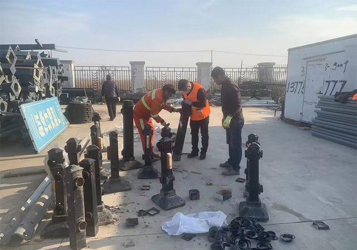 道路養(yǎng)護班組根據(jù)多日來梳理形成的問題清單,制定切實可行的維修方案,確保安裝質(zhì)量和進度。在蘇海路維修更換老款護欄時,為了達到全路段護欄設(shè)施的整體性、連續(xù)性、統(tǒng)一性,養(yǎng)護人員積極作為,對先前更換拆下的老款護欄進行合理利用,相對完好的,用于同款護欄的補換及用于日后臨時應(yīng)急道口封控保障等。