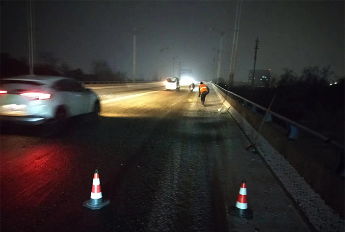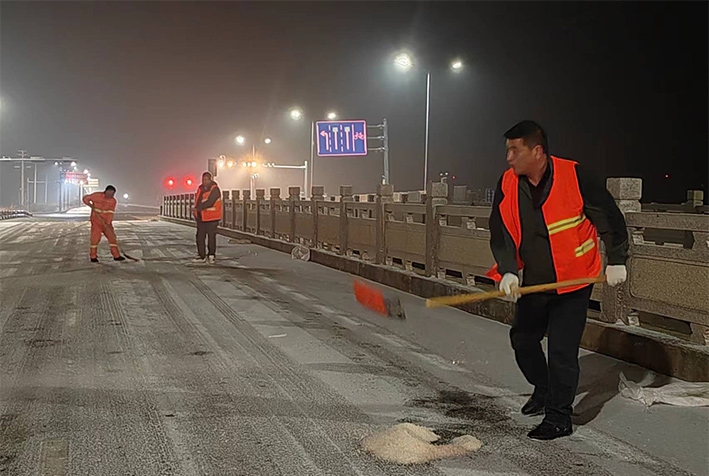 “下雪就是命令!”昨晚幾乎與降雪同步,板橋園區(qū)滿城“橘黃閃耀”。風(fēng)雪中,瑞南人不畏嚴(yán)寒,堅(jiān)守崗位,后勤保障加班加點(diǎn),在連云園區(qū)燒香河大橋上,各班組人員協(xié)同作戰(zhàn),有指揮、有鏟雪、有拋灑融雪劑,他們揮舞鐵鍬、揮動(dòng)掃把,全速進(jìn)行掃雪除冰工作。截止19日凌晨?jī)牲c(diǎn),燒香河大橋、程圩高架橋,上下引坡等交通要道區(qū)域積雪已基本清除完畢,其他路段正在有序清理。 (金知青)